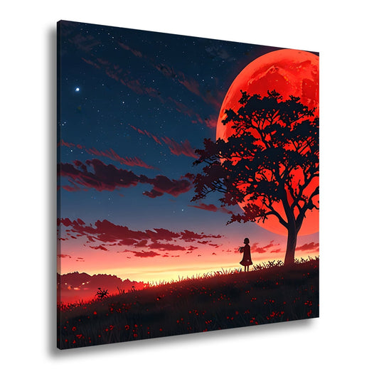 Leinwandbild Blutmond erhebt sich hinter dem Baum – ein stiller Moment.