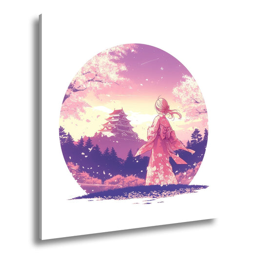 Leinwandbild Kimono im Blütenwind – ein stiller Blick zum Schloss.