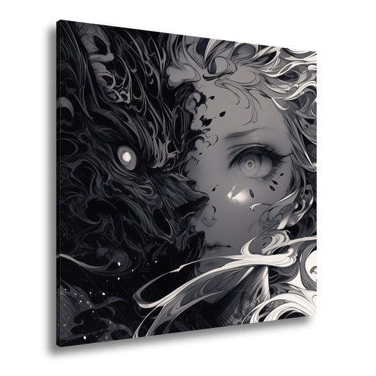 Leinwandbild Licht trifft Schatten – zwei Seelen in einem Gesicht.