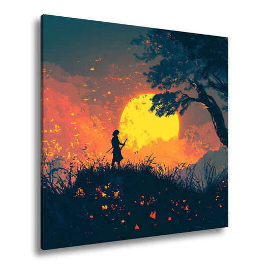 Leinwandbild Samurai im Sonnenuntergang – Stille Ehre am Horizont.