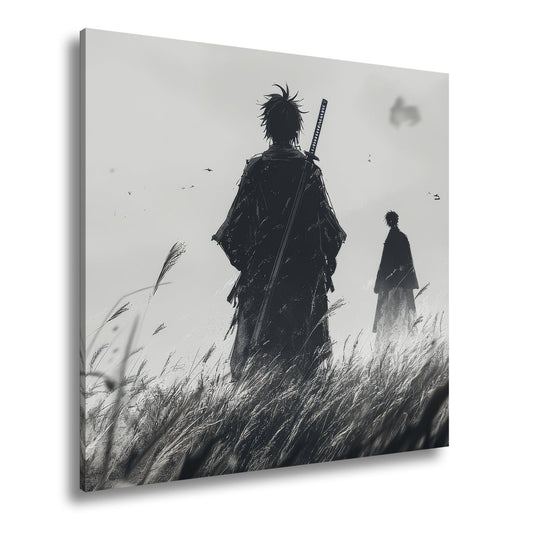 Leinwandbild Samurai XXL – Zwei Krieger stehen still im windgepeitschten Gras