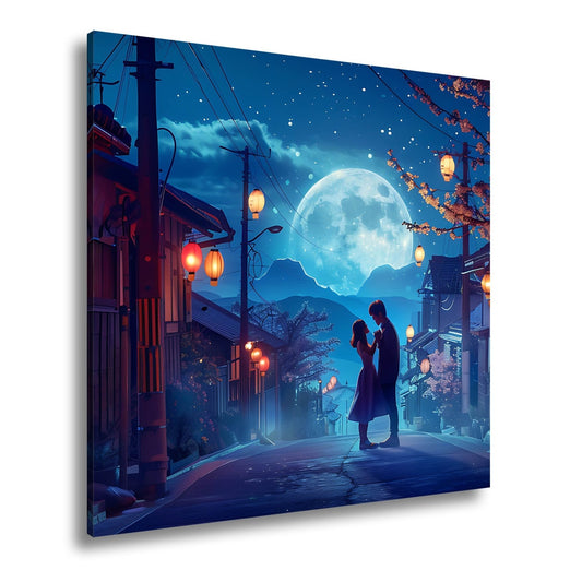 Leinwandbild Verliebte tanzen im Mondlicht unter Laternen und Sternen.