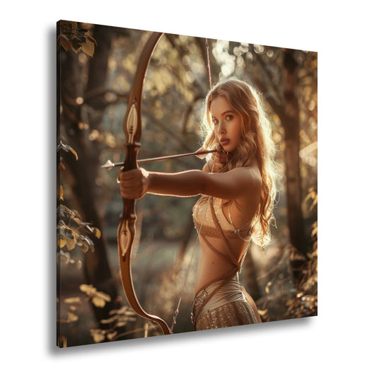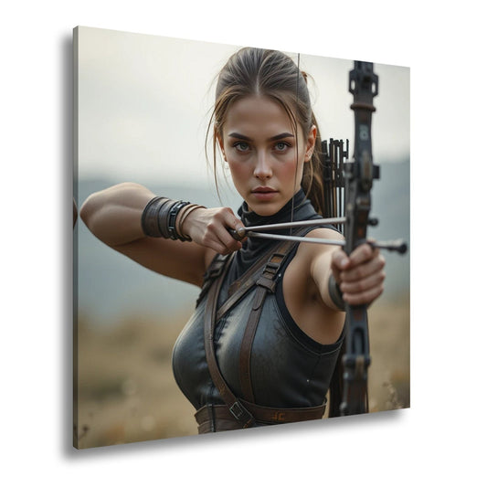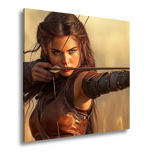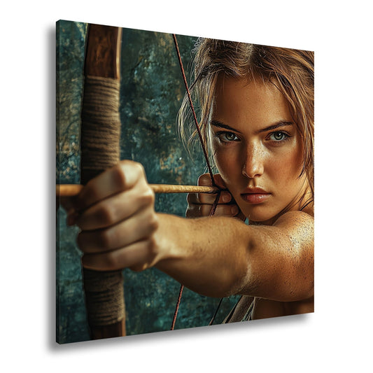 Leinwandbild Bogenschützin XXL – Fokussiert mit unerschütterlichem Blick