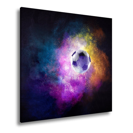 Leinwandbild Farbenexplosion trifft Fußball – ein Spiel wie aus dem Kosmos.
