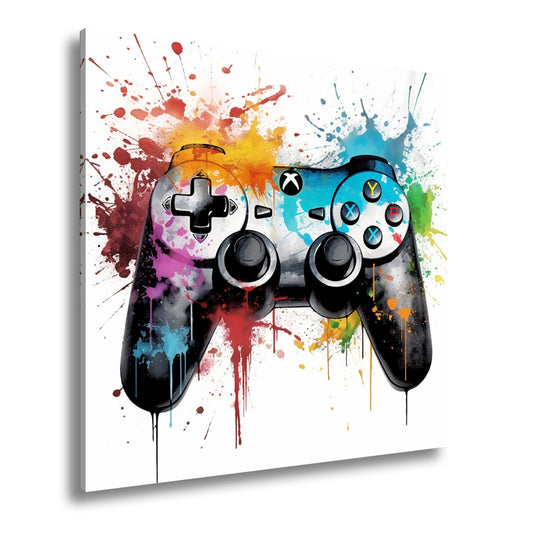 Leinwandbild Farbrausch der Kontrolle – Gaming trifft auf Kunstgewitter.