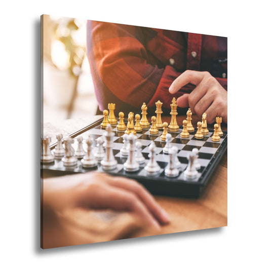 Leinwandbild Schachpartie – Gold gegen Silber in Konzentration XXL