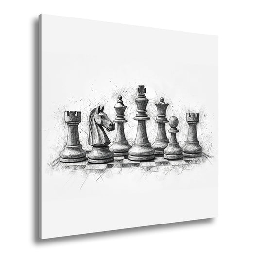 Leinwandbild Zeitlose Schachfiguren in kunstvoller Bleistiftstudie
