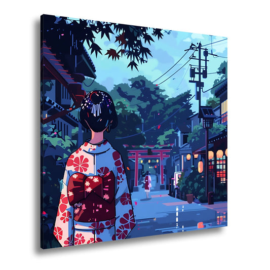 Leinwandbild Geisha in Rot und Blau – Anmut im Kontrast der Farben.