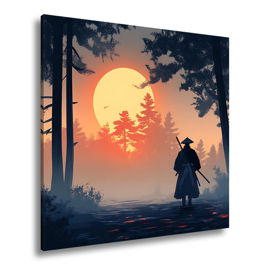 Leinwandbild Samurai im Sonnenuntergang – Stille Ehre am Horizont.