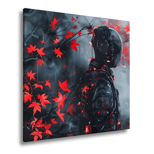 Leinwandbild Roter Ahorn trifft dunkle Rüstung im Nebel der Zukunft.