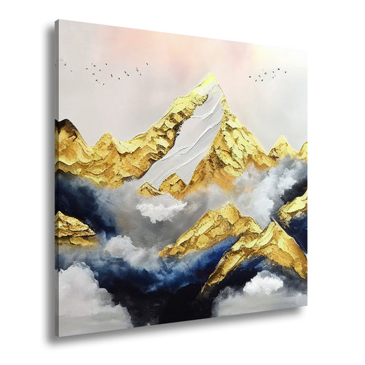 Leinwandbild Goldene Gipfel ragen aus nebelverhülltem Himmel.