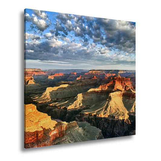 Leinwandbild Sonnenlicht malt goldene Schatten in die Weiten des Grand Canyon
