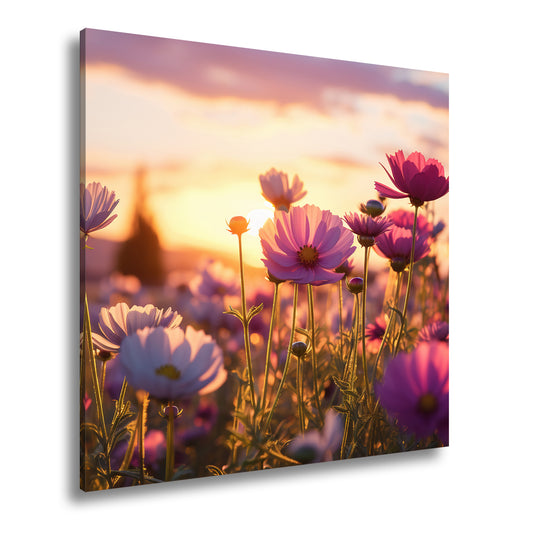 Leinwandbild Sonnenuntergang küsst ein Meer aus zarten Kosmeen.