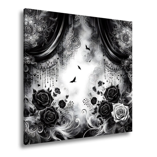 Leinwandbild Gotische Rosen tanzen mit Schatten und Spitze.