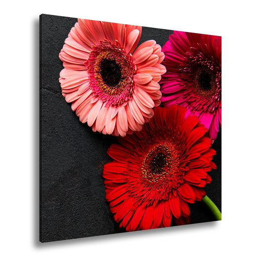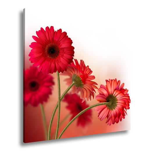 Leinwandbild Leuchtende Gerbera tanzen im warmen Licht des Morgens.