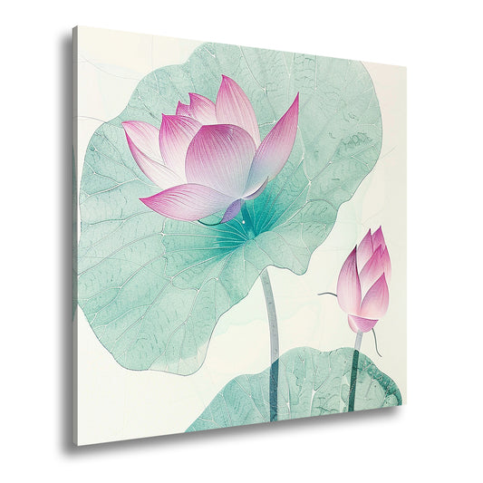Leinwandbild Lotuspoesie – filigrane Blüten auf zarten Aquarelladern.