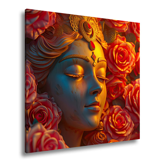 Leinwandbild Göttliche Ruhe – eingebettet in ein Meer aus Rosen.