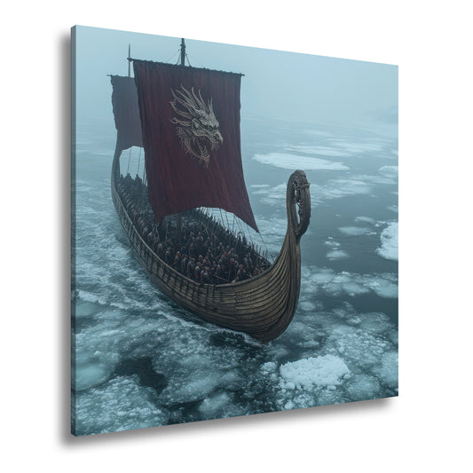Leinwandbild Wikinger stürmen mit Macht durch gefrorene Fluten