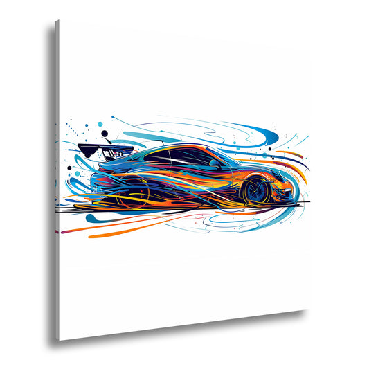 Leinwandbild Rennwagen XXL – Farbexplosion & Geschwindigkeit als Kunstwerk