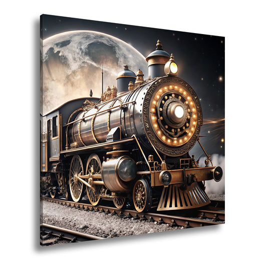Leinwandbild Zwischen Wolken und Sternen fährt der Zug der Fantasie.
