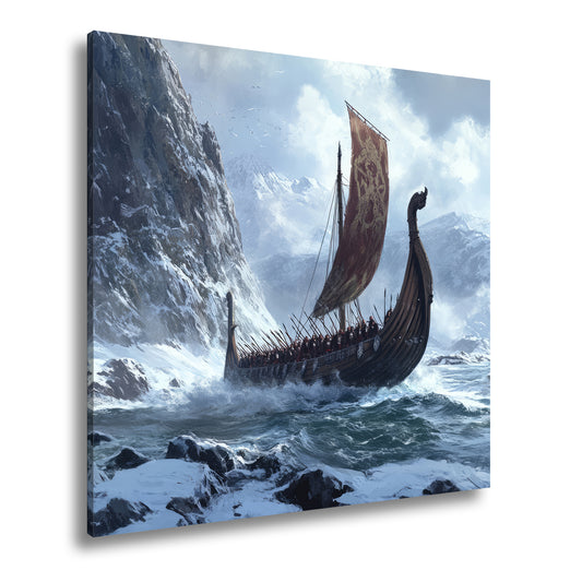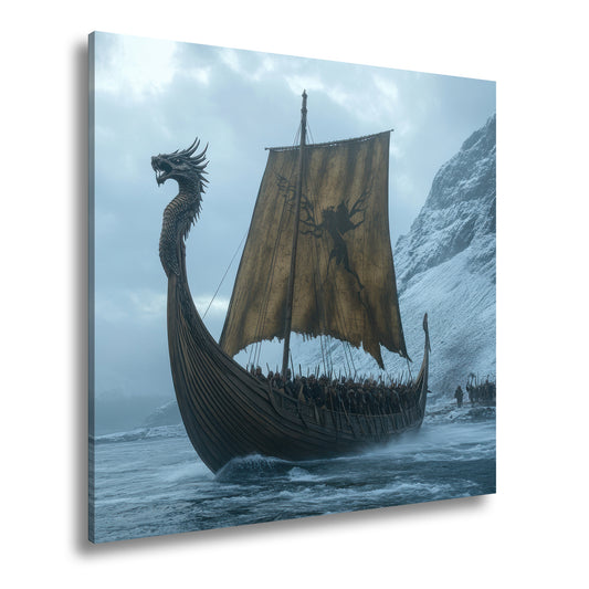 Leinwandbild Wikingerdrache pflügt durch eisige Fjorde