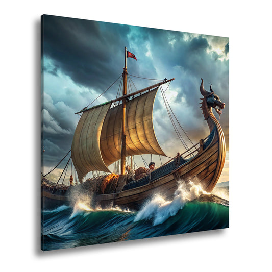 Leinwandbild Nordische Krieger brechen durch stürmende See