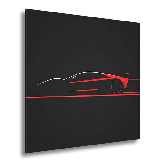 Leinwandbild Roter Blitz in minimalistischer Supersportwagen-Silhouette