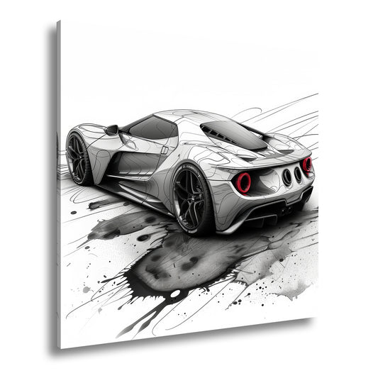 Leinwandbild Skizzenhafter Supersportwagen in dynamischer monochromer Eleganz