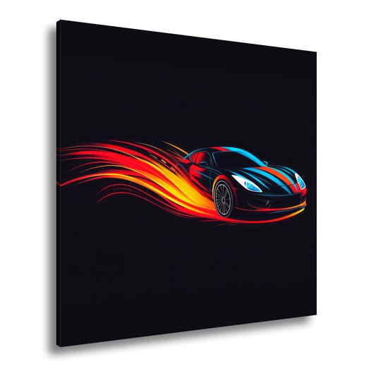 Leinwandbild Rennwagen Elegante Speed-Silhouette im strahlenden Neonlicht