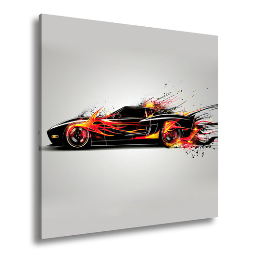 Leinwandbild Feuriger Sportwagen in dynamischer Explosion aus Farben