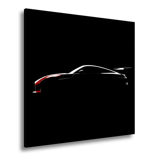 Leinwandbild Silhouette eines Supersportwagens im tiefen Schwarz