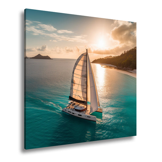 Leinwandbild Luxuskatamaran tanzt im Licht der tropischen Sonne.