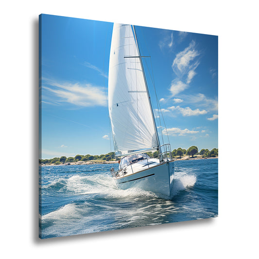 Leinwandbild Segelyacht trotzt den Wellen in blauem Glanz.