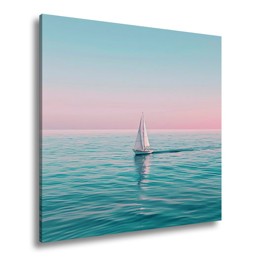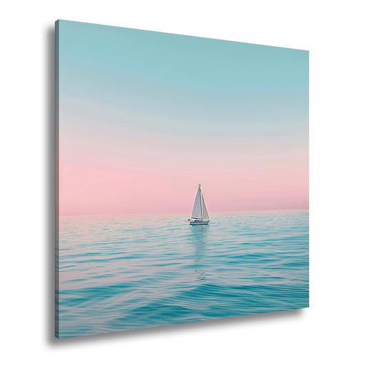 Leinwandbild Segelboot in Pastell – Stille auf unendlichem Ozean.