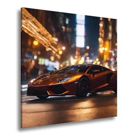 Leinwandbild Bronze im Blitzlicht – Powercar glänzt in der Großstadtflut.