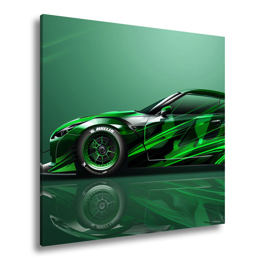 Leinwandbild Grüne Geschwindigkeit – ein Bolide im Rausch futuristischer Formen.