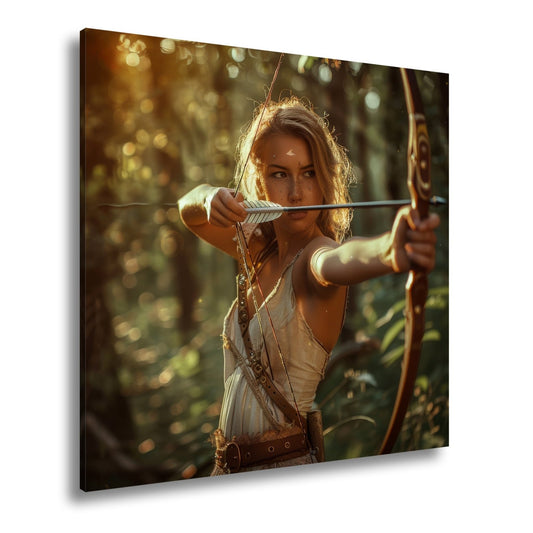 Leinwandbild Bogenschützin XXL – Fokussiert mit unerschütterlichem Blick