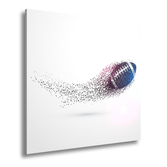 Leinwandbild Football löst sich in tausende Punkte auf und fliegt dynamisch davon