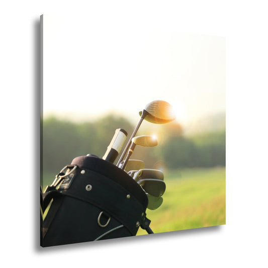 Leinwandbild Golfschläger glänzen im Licht eines stillen Morgens