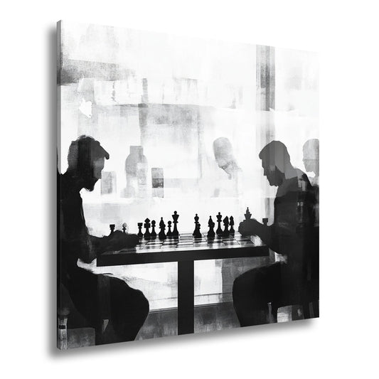 Leinwandbild Schattenhafte Spieler versunken im tiefen Schachduell