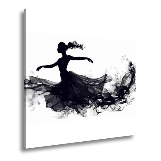 Leinwandbild Tintenhafte Silhouette tanzt in aufwirbelnder Eleganz