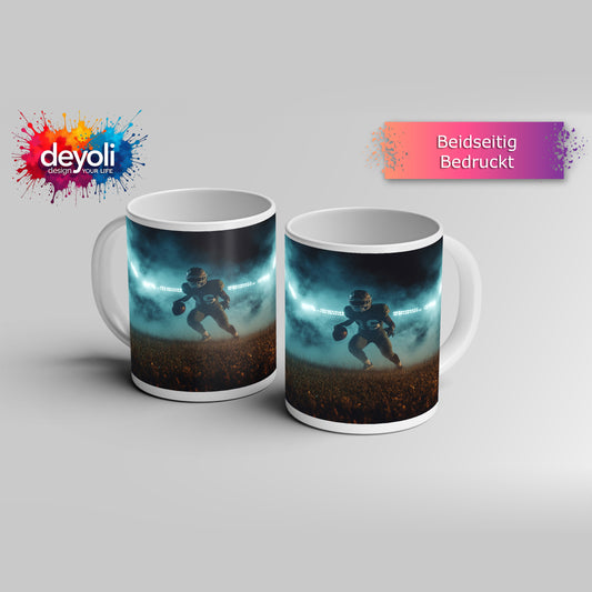 Motivtasse Tinte trifft Taktik – Football als künstlerische Explosion.