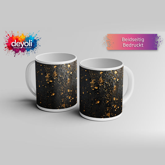 Motivtasse Dunkle Eleganz mit goldenen Splittern gekrönt.