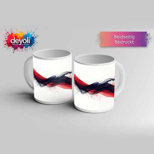Motivtasse Roter Hauch und schwarzer Schleier tanzen auf Weiß.