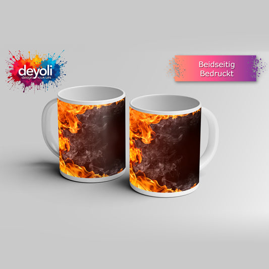Motivtasse Lodernde Flammen tanzen mit aufsteigendem Rauch