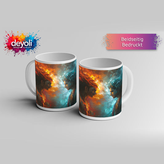Motivtasse Feuer und Wasser – göttliche Gegensätze im Blickduell.