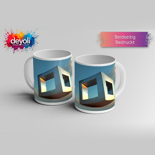 Motivtasse Schwebender Würfel im Spiel aus Licht und Geometrie.
