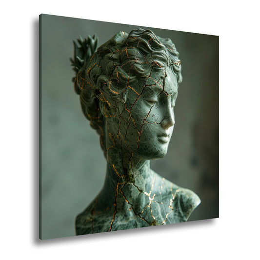 Leinwandbild Zerbrochene Göttin mit goldenen Narben XXL – Kintsugi Wandbild