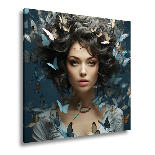 Leinwandbild Frau XXL – Magische Schönheit mit Schmetterlingen im Haar
