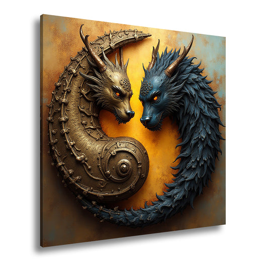 Leinwandbild Drachen XXL – Zwei vereint im kraftvollen Yin-und-Yang